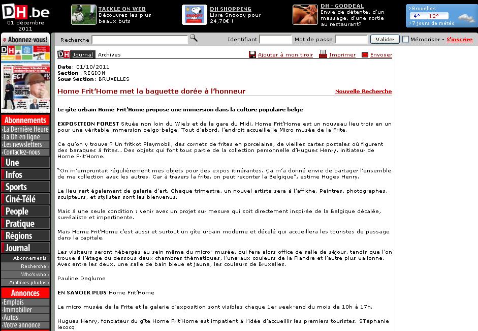 LA PRESSE PARLE DE HOME FRIT’ HOME