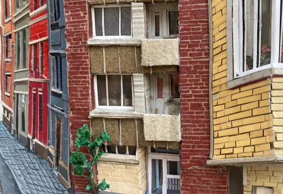 Yorick Efira is een expressionistische schilder. Maar daarmee wordt de grijze verf van de Brusselse gevels een stuk karton, het rood van de bakstenen een pizzaverpakking, speelt een doosje lucifers de rol van het geel van de balkons... Allerlei kleine, verouderde alledaagse voorwerpen dat de kunstenaar de schilderkunst vervangt. Ze ontsnapt uit het canvas en betreedt een nieuwe dimensie tussen acryl op canvas, hout of glas, en sculptuur...